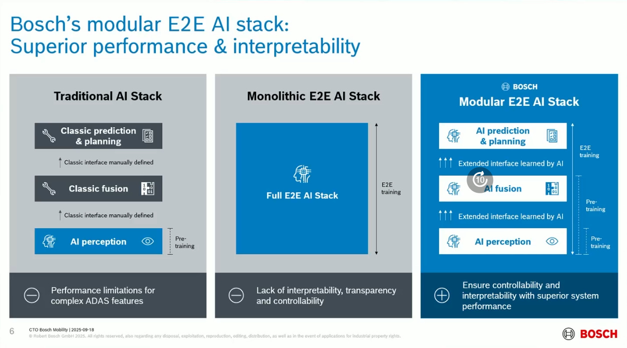Mathias Pillin, CTO of Bosch Mobility, presented his version of E2E AI learning ideas at The Autonomous.